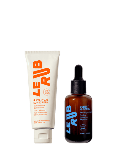 Le Rub’s products aren’t just safe for sensitive skin; they’re kind to it. We use soothing ingredients with anti-inflammatory properties to shield your skin from UV light—a crucial step in preventing irritation—and other environmental stressors. Our sunscreen is ideal for any environment—beach, mountains, city, or farm. It's not just designed for one setting; it's crafted to deliver outstanding protection and care wherever you are. Formulated with antioxidants that soothe the skin and help prevent flare-ups of conditions like rosacea, eczema, and acne. Our products, while focused on sun protection are designed to provide holistic skincare benefits, including hydration and skin enhancement. Our repairing face mask and Sunset Serum are prime examples, packed with ingredients such as aloe vera and grapeseed oil. These ingredients work to soothe and repair the skin, offering relief from irritation and promoting a radiant complexion, far beyond simply being fragrance-free.
